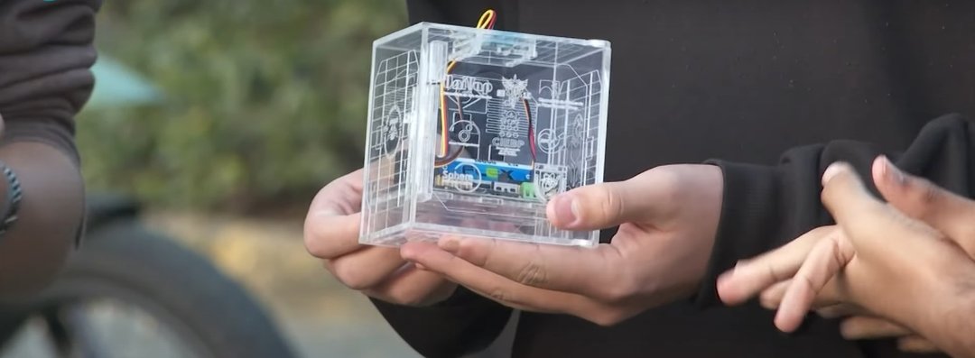 Dispositivo de 10 cm coletou dados climáticos em tempo real, resultado de atividades práticas de engenharia, programação e pilotagem de drone.